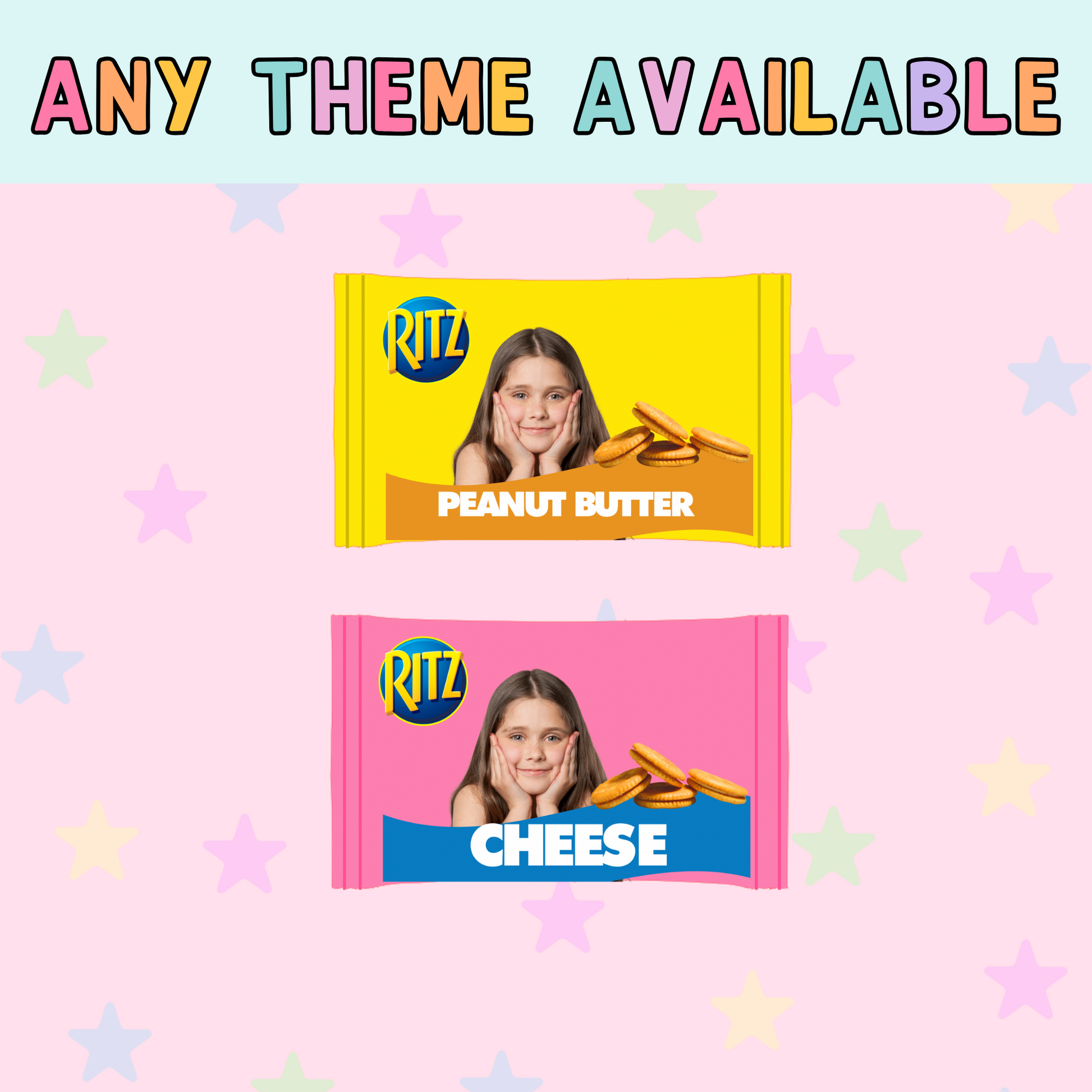 غير مملوءة : عبوات Ritz Bits مجمعة مسبقًا مع ملصقات مخصصة. يمكنك ملؤها ببسكويت Ritz Bits. 🎨🍪