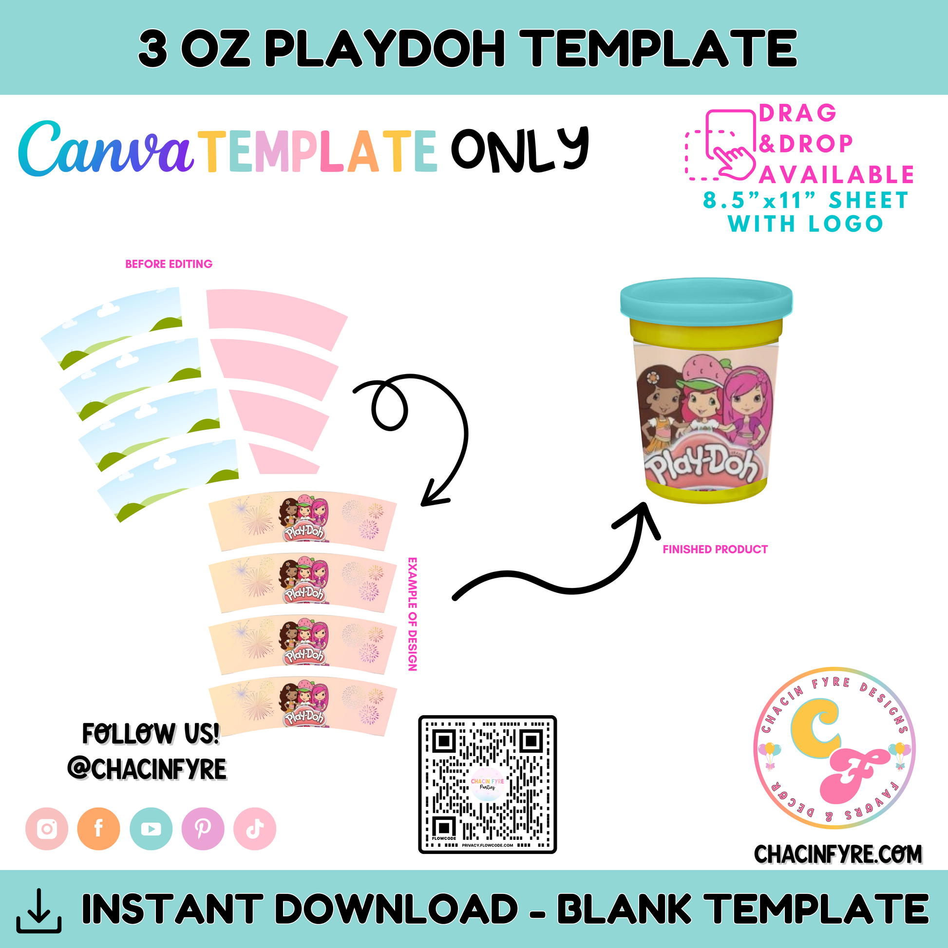 Create custom 3oz Playdoh labels with this blank template. Easily design your own labels using Canva, a user-friendly online design platform.