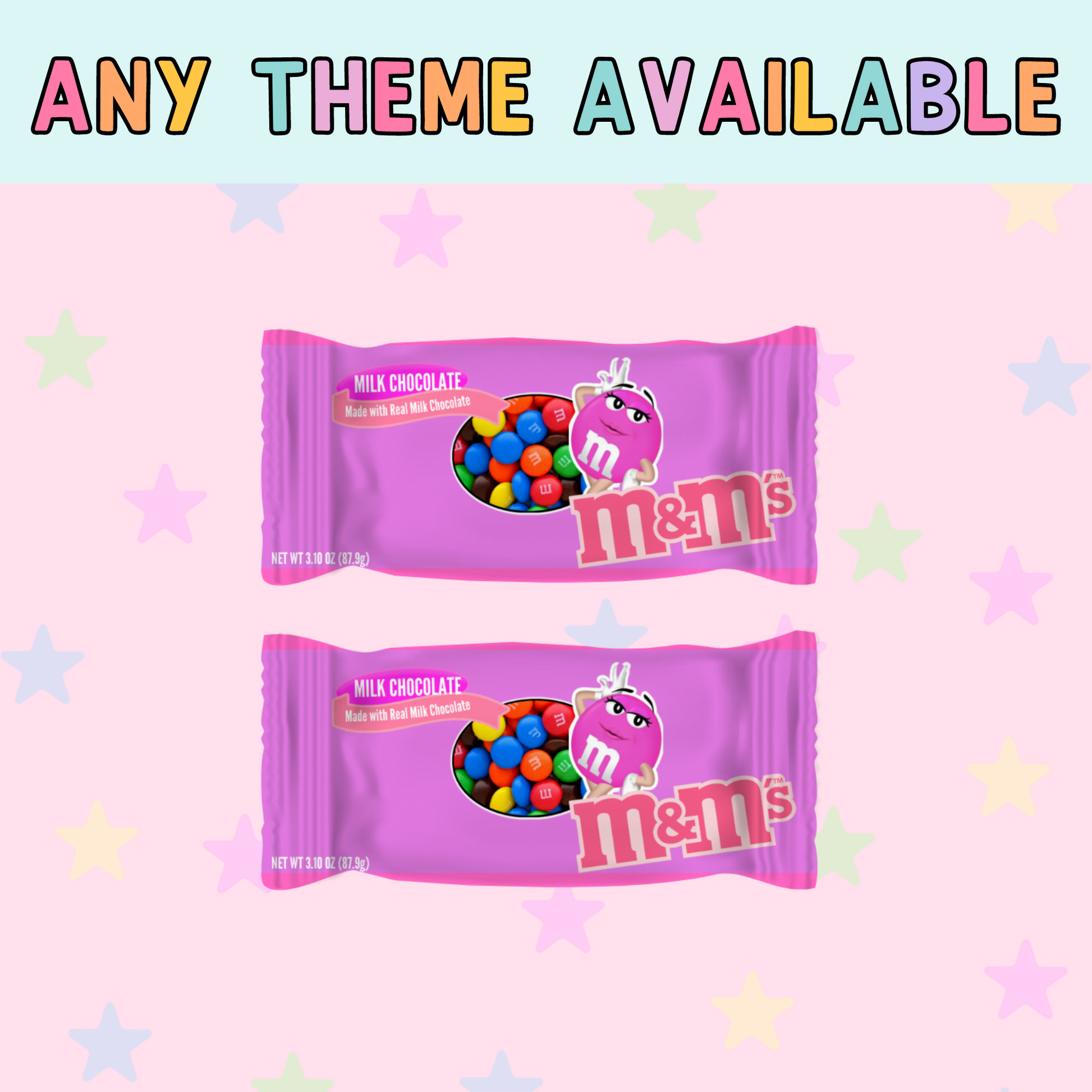 Print Only: We design, print, and apply custom labels directly to the M&M packs. You'll receive the labeled packs ready to use. 🖨️✂️ For supplies, visit our Amazon Storefront.