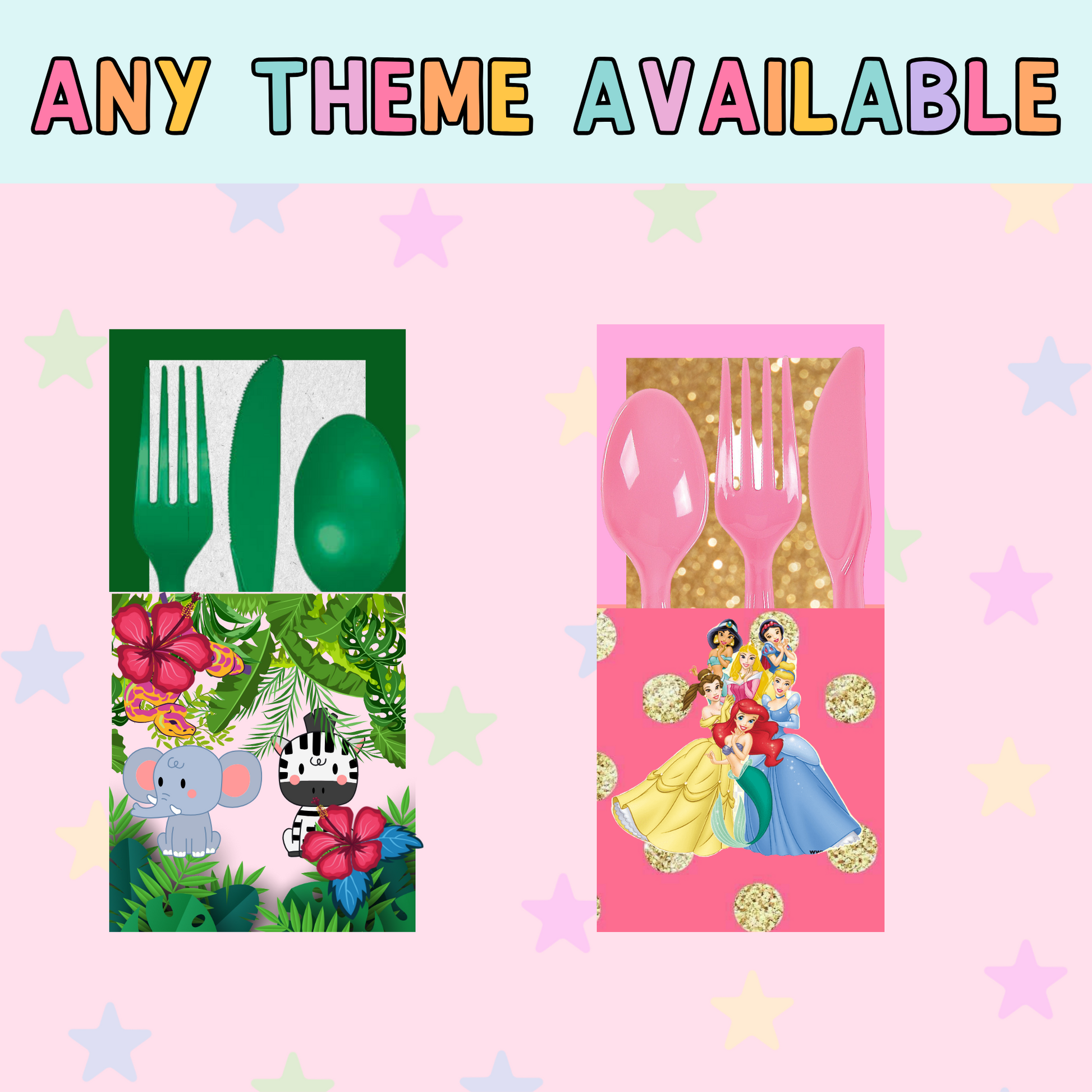 You will receive 12 sets of fork, knife & spoon within your custom design pouch.