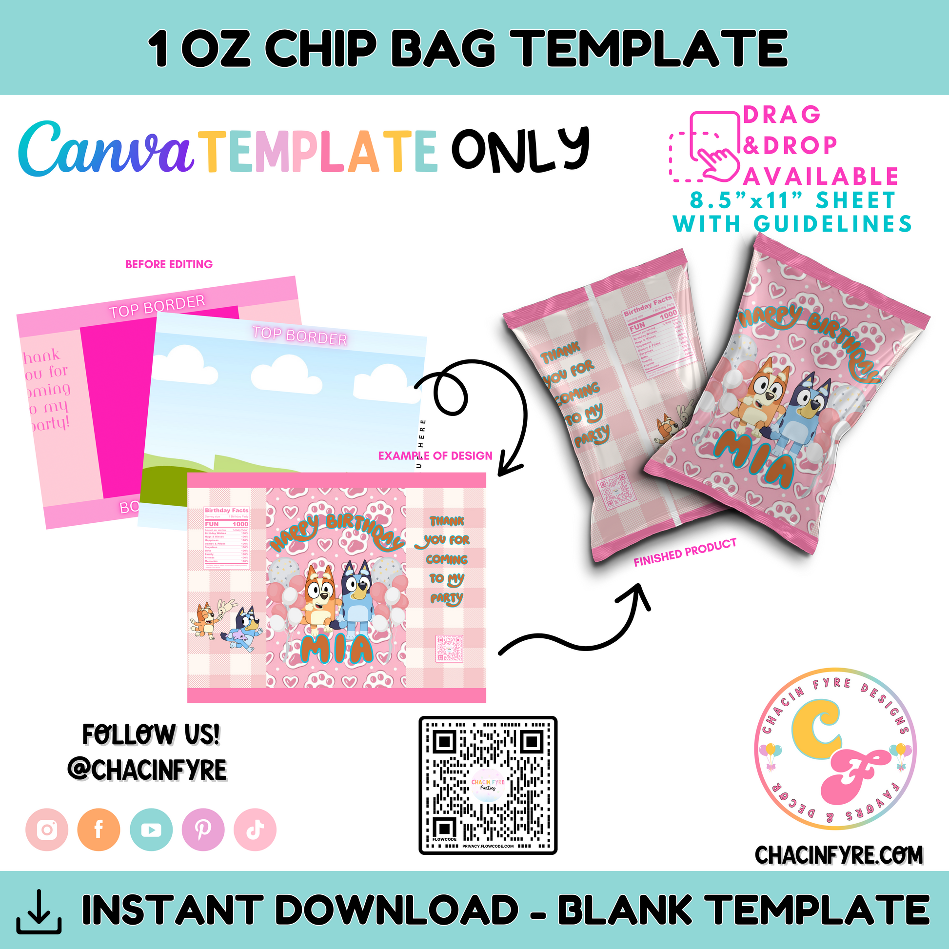 Customize your own chip bag designs with this blank template. Perfect for parties, events, or personal use.