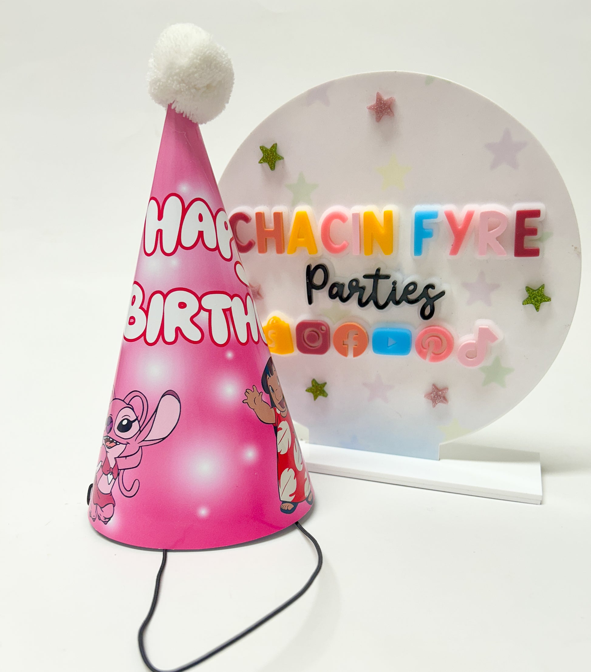 ✨ Top off your celebration in style with our Custom Party Hats! Whether you're throwing a birthday bash, themed baby shower, or character party, these hats add the perfect pop of fun and flair to your event.